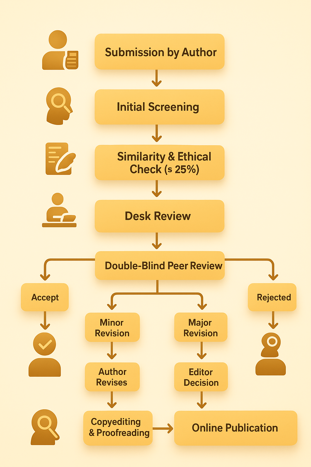 Every submitted manuscript is first assessed by the Editorial Team to ensure compliance with the journal’s writing guidelines, aims and scope, as well as to verify academic soundness and originality. Manuscripts failing to meet the required criteria may be returned to authors for revision or directly rejected. A plagiarism check using reliable software is conducted at this stage.